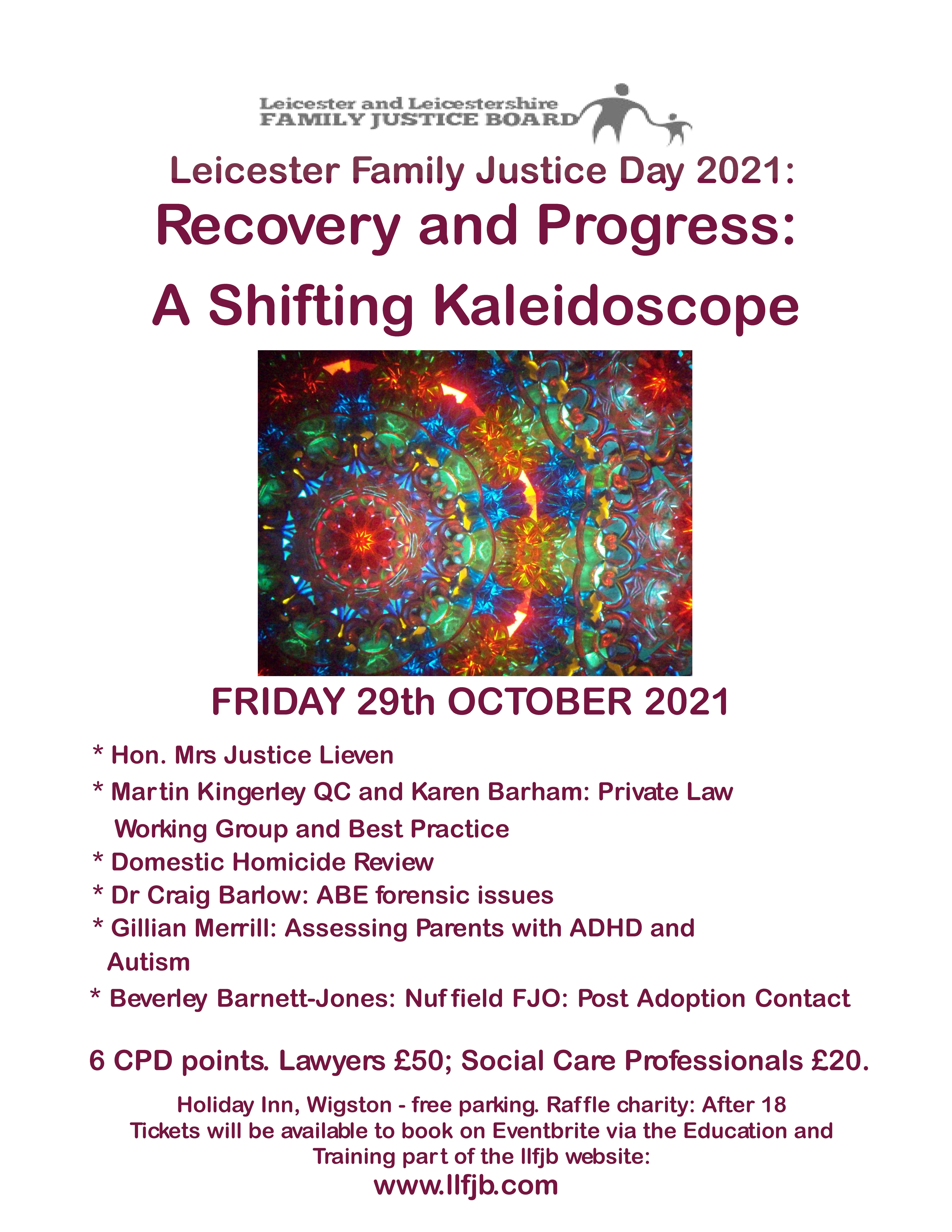 22 September 0 Leicester Family Justice Day 2021 – Book Now Laura Vickers | Education & Training, Events, Latest News Tickets are now available for our 2021 Family Justice Day. Book here.